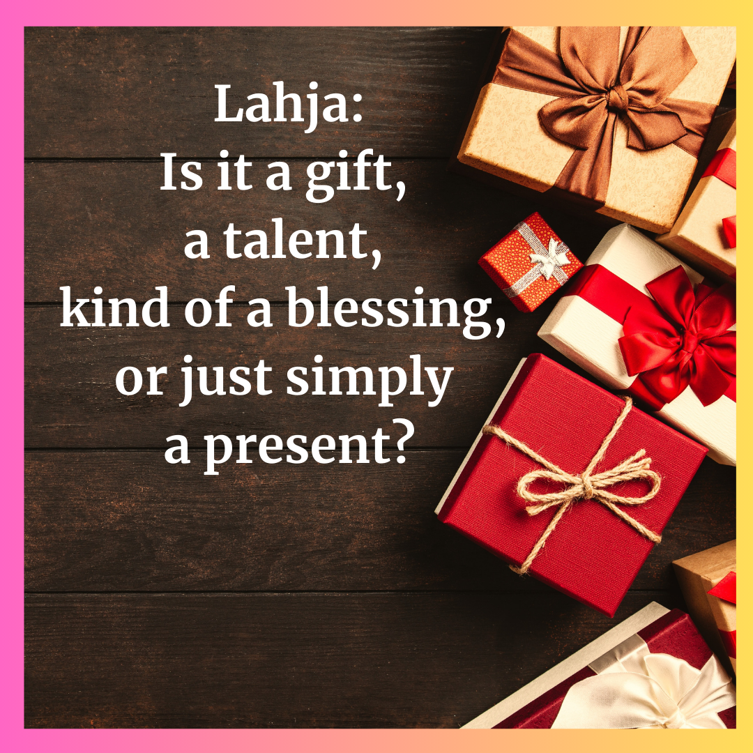 Suomen kielen alkeiskurssilla oppii nopeasti, että suomeksi sanoilla on monta merkitystä. Olen kirjoittanut aikaisemmin verbeistä pitää, välittää, antaa ja saada, vain muutamia mainitakseni, joten vaihtelun vuoksi ja lähestyvän joulun kunniaksi otan käsittelyyn substantiivin lahja.